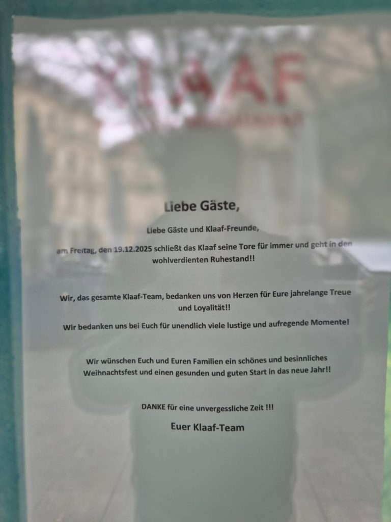 Die Nachfolge soll indes geklärt sein: In das „Klaaf“ rückt demnach ein asiatisches Restaurant. So soll nach Informationen von koeln0221 der erfahrene Fernostspezialitäten-Gastronom Do (Minsu Restaurant) einen weiteren Betrieb aufsperren.