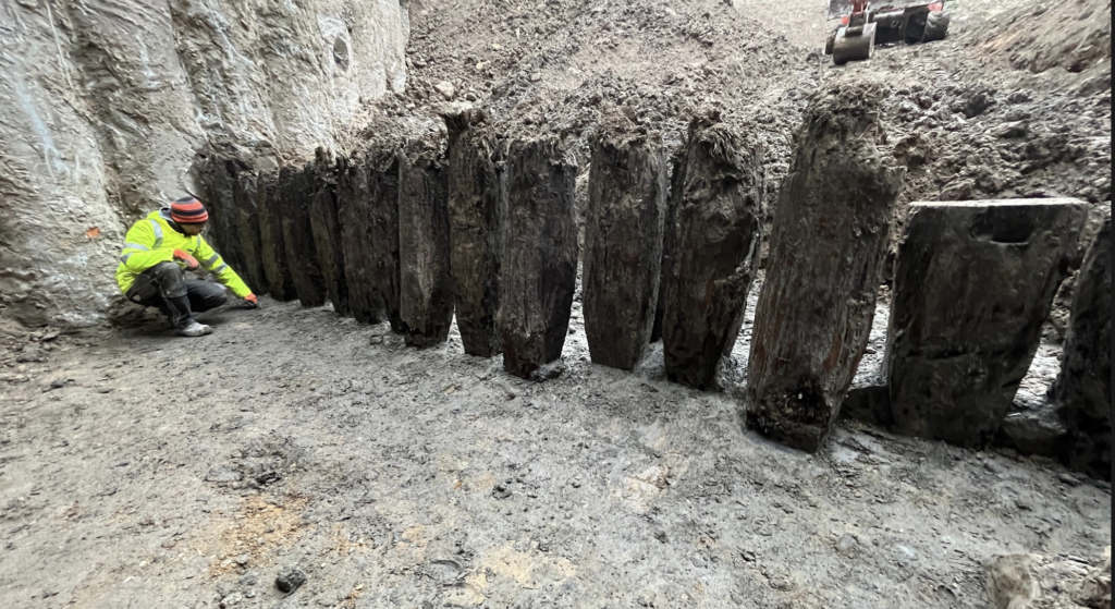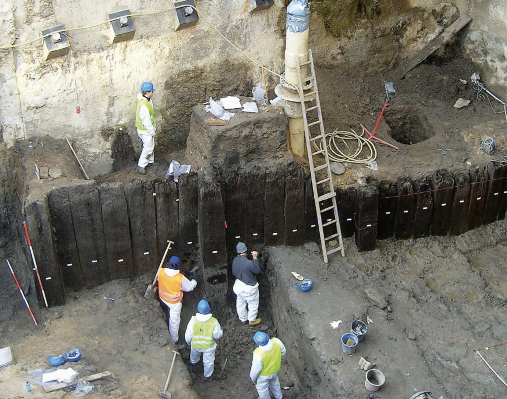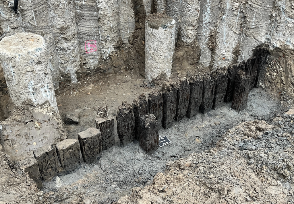 Die Stadt Köln gibt bekannt: „Bei Aushubarbeiten für die Baugrube für den Erweiterungsbau des Wallraf-Richartz-Museums & Fondation Corboud wurde in den vergangenen Wochen ein Uferschutzbauwerk des römischen Hafens freigelegt. Es handelt sich um eine Pfahlwand aus dicht an dicht in den Boden gerammten angespitzten Eichenbalken.