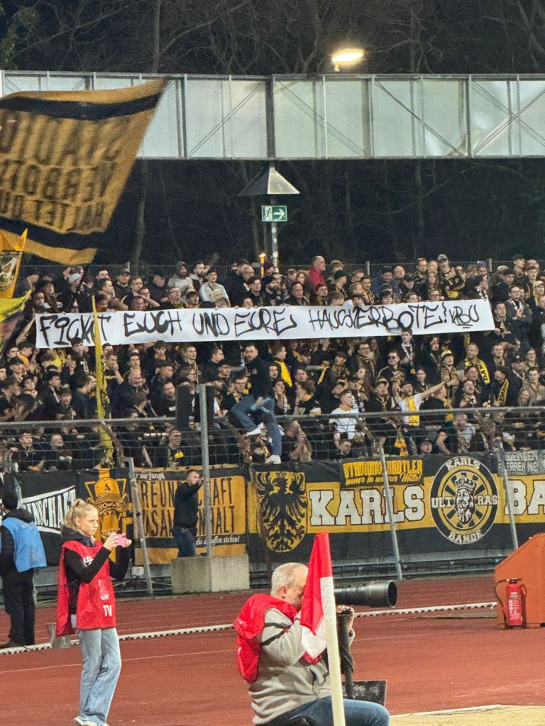 Die Aachener Fans dagegen waren eigens mit einem Sonderzug an den Bahnhof Süd gekommen, hatten mit einem Banner noch einen Protest losgelassen – und fuhren letztlich trostlos heim. . .