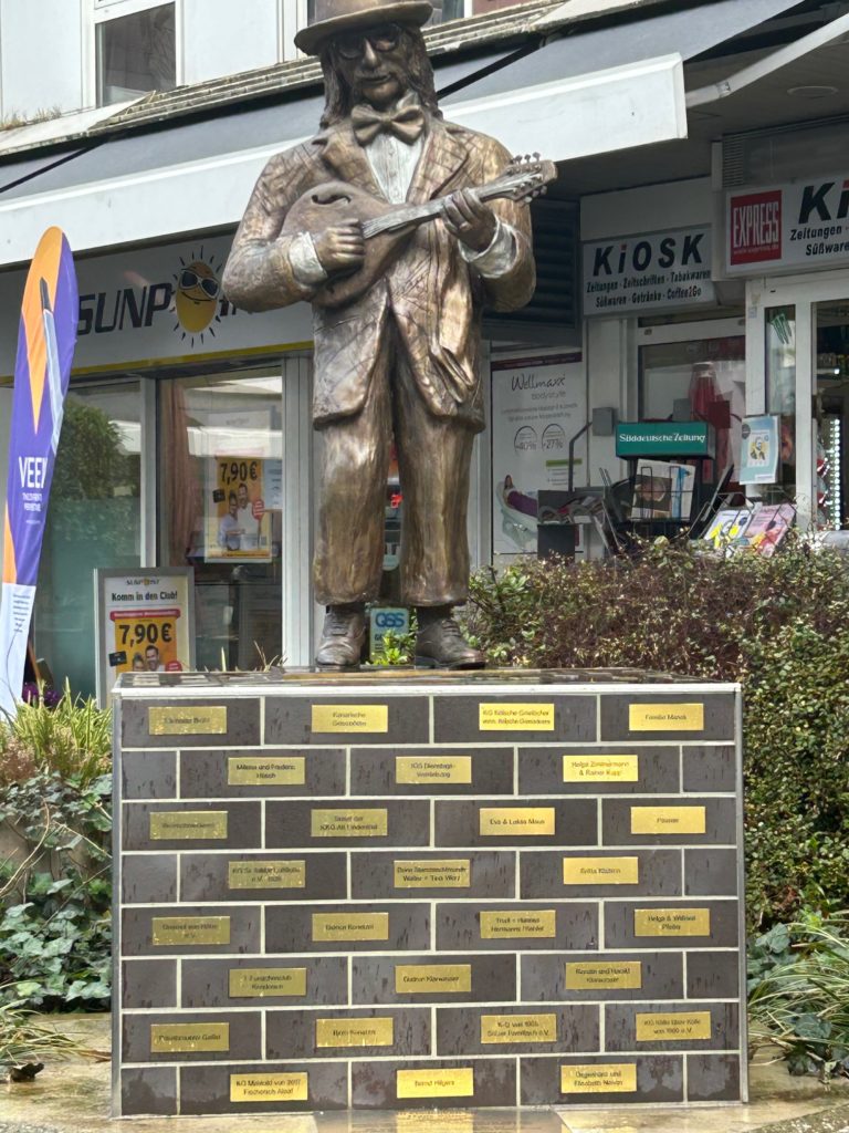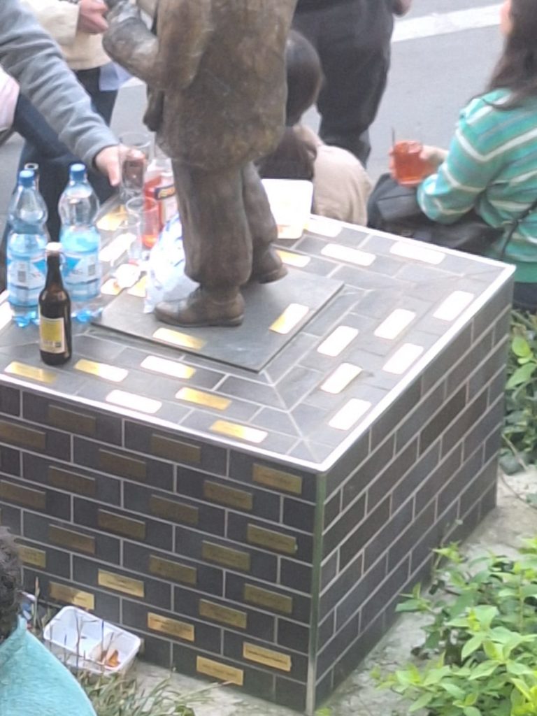 Humorlos ihren Papp-Müll, Biergläser und Pullen auf dem Sockel neben der Figur gelagert. Und fröhlich Aperol-Drinks zum „Day Drinking“ gemixt. Das liebevoll gestaltete Kunst-Denkmal, für das ja viele Freunde gespendet hatten, am helllichten Tag so als eine Art mobile Bar missbraucht.