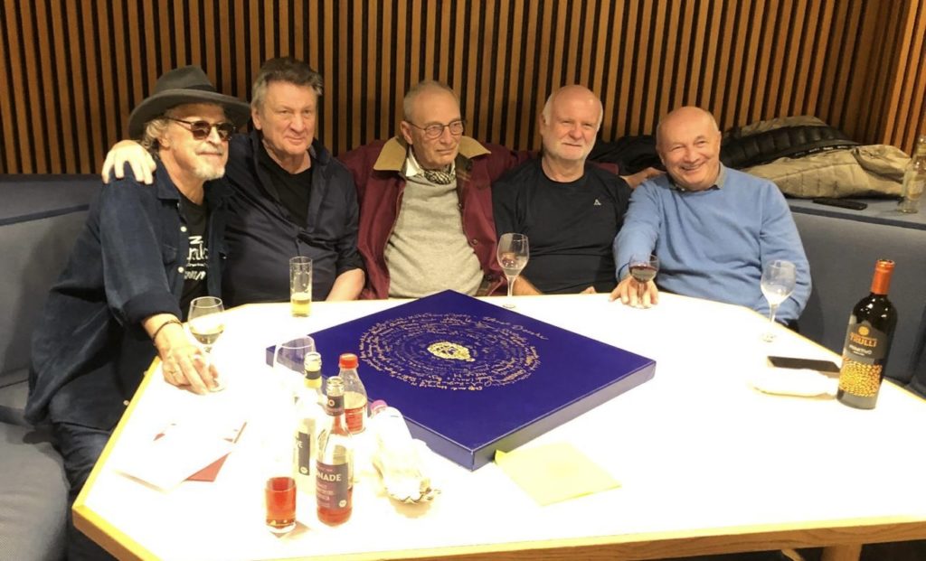 „Wie man sieht, verträgt sich ein Teil der Band bis heute“, sagt BAP-Urgestein Bernd Odenthal mit einem Augenzwinkern – und kommentiert einen Schnappschuss im Anschluss des Abends im Konzerthaus am Rhein, der fünf Mitglieder der kölschen Kultband beim geselligen Beisammensein zeigt“.