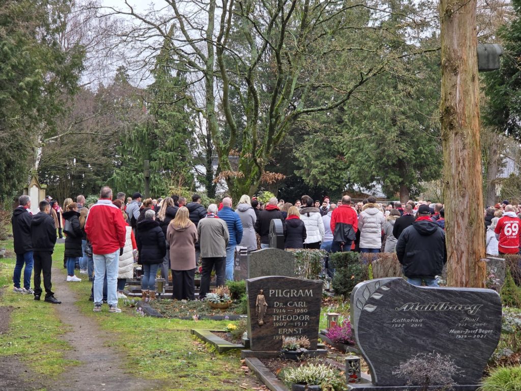 Dies geschah nun am Dienstag Mittag. Zur Beisetzung kam die Trauergemeinde, bestehend aus über 100 Personen, weitestgehend tatsächlich in FC-Fankluft und den Farben rot-weiß.