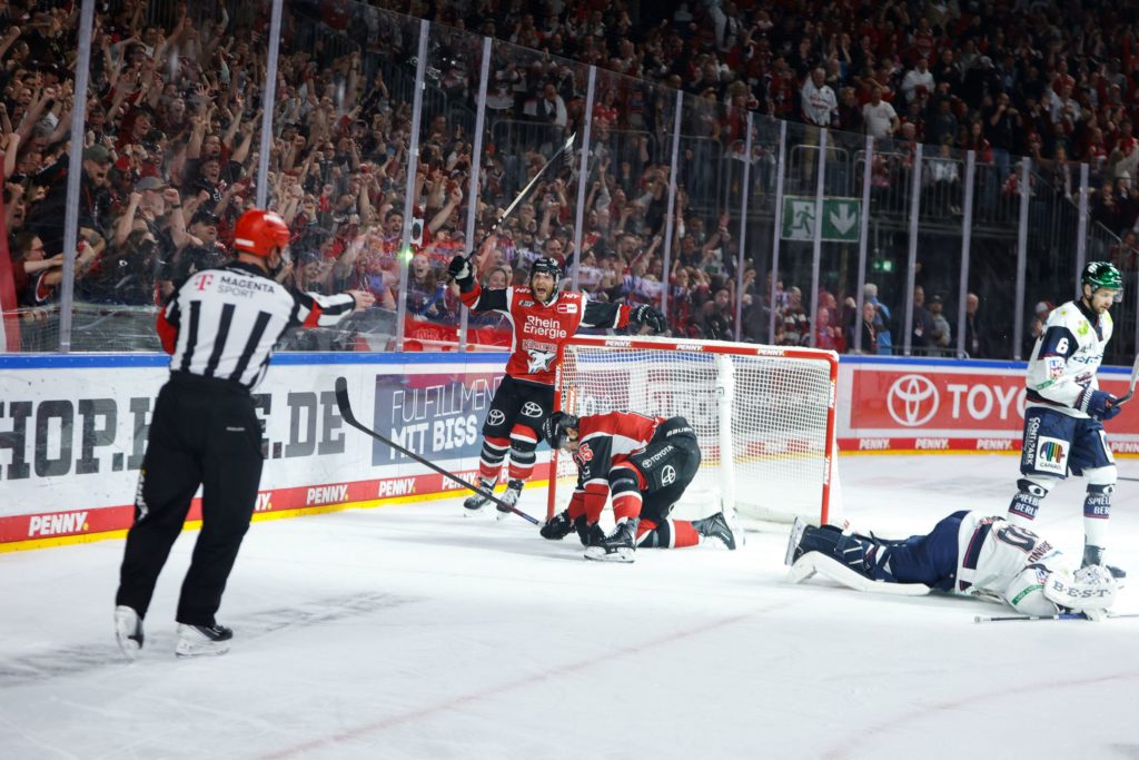 Doch der Champion wollte sich nicht geschlagen geben und zog Tempo und Intensität noch einmal an. Der gebürtige Kölner Frederik Tiffels scheiterte an Juvonen, zudem verzog der bald Kölner Marcel Noebels knapp. So war der Ausgleich durch Liam Kirk erneut in Überzahl (52.) nicht überraschend, da der KEC durch MacLeod zuvor das mögliche 4:2 vergaben. So ging es in die Verlängerung.