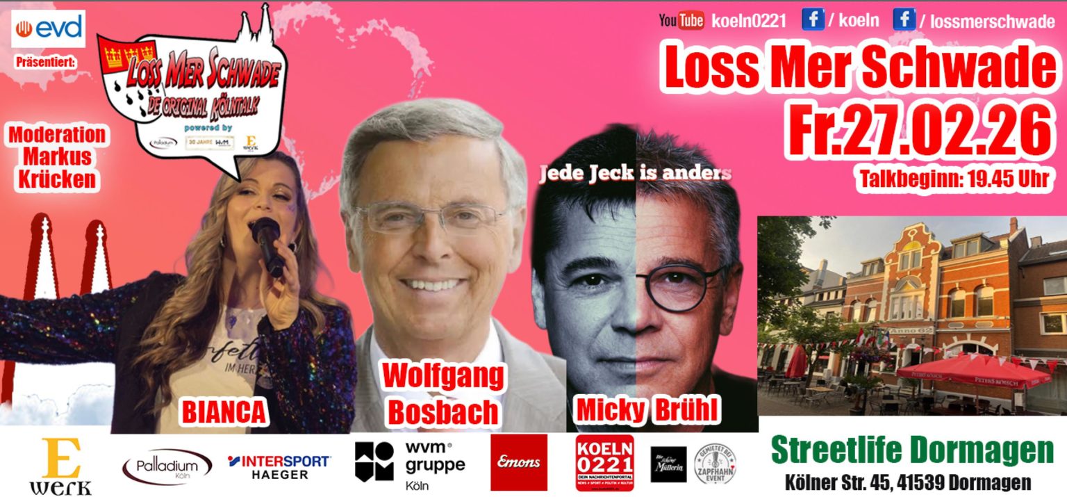 Dormagen | Comeback in Dormagen! Loss mer schwade kehrt wieder im „Streetlife“ auf der Kölner Straße in Dormagen ein. Bei Inhaber Daniel Fiori sind wie immer bekannte hochkarätige Gäste zum Talk am Start. Es soll ein Mix aus zwei Teilen werden, wobei der eine das Brauchtum mit Blick auf aktuelle politische Themen sowie die gerade vergangene Karnevals-Session zum Thema hat – und der zweite die Tragödie um den getöteten Dormagener Realschüler Yosef (†14). Ein Thema, an dem man in Dormagen derzeit nicht vorbeikommt, da es viele Menschen beschäftigt und betrifft. Dormagen: Ernste und heitere Themen beim Talk Wolfgang Bosbach ist … Heute im Streetlife: Talk-Abend mit WoBo und Co. – Yosef Thema weiterlesen