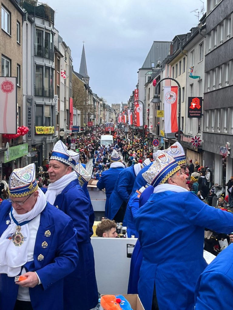 D‘r Zoch kütt! Rrund 300 Tonnen Süßigkeiten und 300.000 Blumensträuße warten an die erwarteten Hunderttausenden Zuschauer entlang der 8,5 km langen Strecke, darunter viele Prominente.