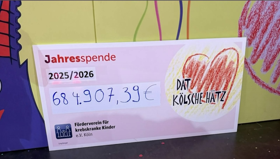 Greven weiter: „Ich hab das natürlich für mein Team entgegengenommen. Ich bin zwar der Ideengeber und der Antreiber, so wie der Chris das so nett gesagt hat, aber ohne mein Team hätte man das nicht geschafft. Wir haben gestern auf der Sitzung alleine – und das, glaub ich, ist einmalig in Köln – über 158.000 € gesammelt – nur auf dieser einen Veranstaltung. Die Schecksumme ist das Jahresgeschäft von 2025, aber gestern diese Riesensumme, die wir gesammelt haben, war gigantisch. Da kommen die blauen Funken und bringen einen Scheck von über 2000 € mit.“