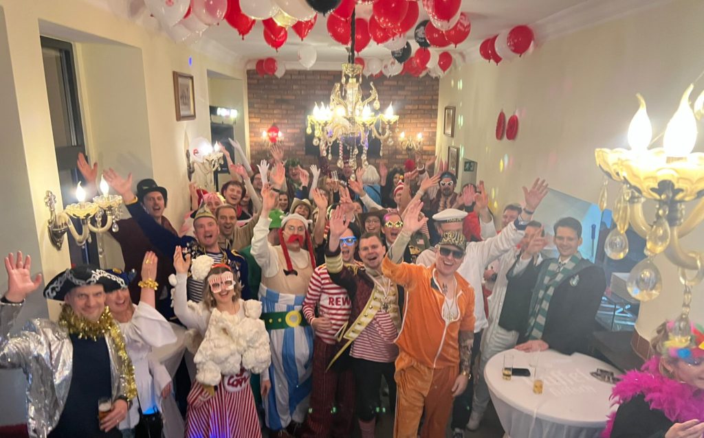 Gemeinsam feiern im Job? Na klar! Am Rhein, beim edlen Vorzeige-Italiener Mangia e via, feierte derweil traditionell Kölns Top-Wirtschaftskanzlei Oppenhoff – und lieferte einen Beweis für jecke Kollegialität! Die kreativ kostümierten Mitarbeiter hatten im Pizza-Tempel sichtlich Spaß, wie der Gruppen-Schnappschuss mit „Obelix und Co.“ zeigt.