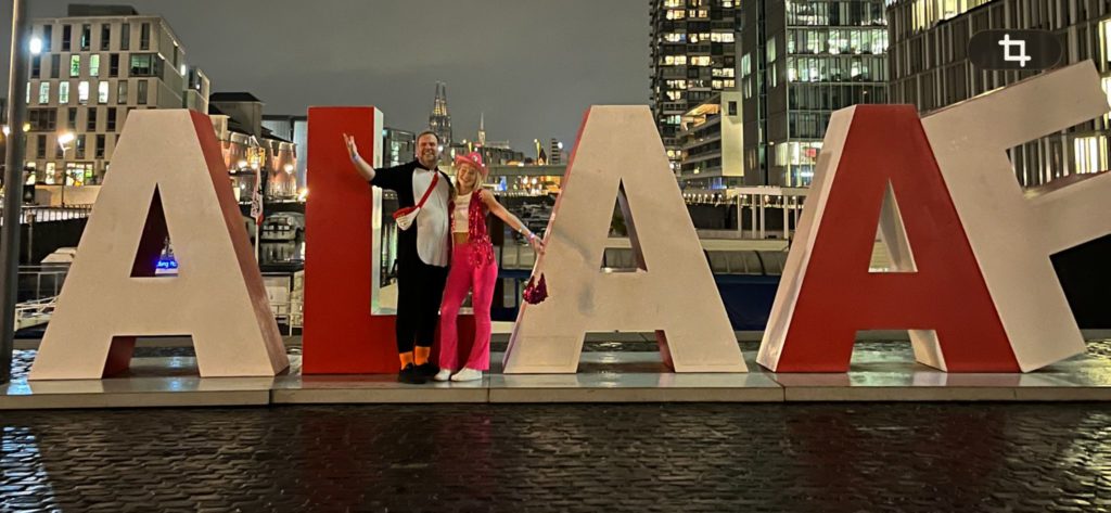 Im Rheinauhafen war Zeit für einen romantischen Schnappschuss, dann ging es in die Kaschemm „Bonner Stübchen“ und auch im „Caminetto“ ging die Sause weiter. Zwölf Stunden insgesamt „lief“ der Party-Marathon durch die Stadt – trotz des Regens. . .