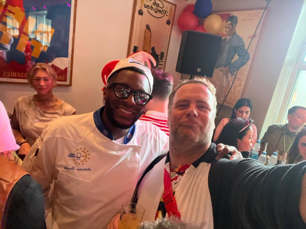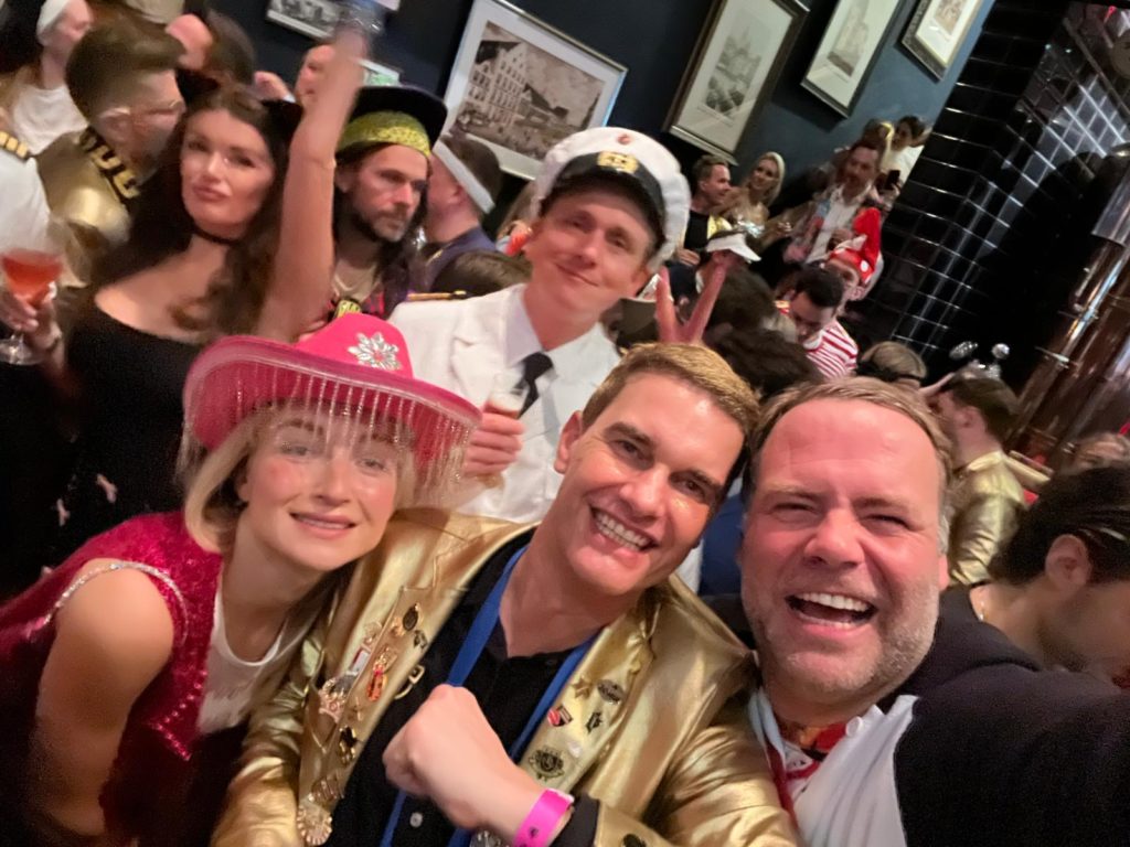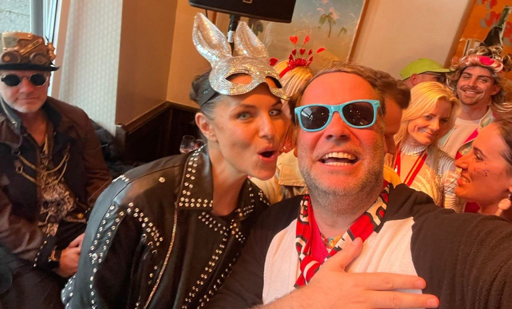 Der Hedonist aus Überzeugung: „Ich war auf fünf Veranstaltungen und hab angefangen mit der Kamellebud im Gaffel am Dom. Immer gut! Die Goldenen Jungs, die fahren da gut auf und es sind nur top top top top top Leute da und alles nur vom Feinsten.“ Da dauerte es nicht lange und das Handy wurde gezückt, als die ersten Promis ihm quasi ins Bild liefen, so z.B. TV-Lady Laura Wontorra und Ex-FC-Held Anthony Modeste.
