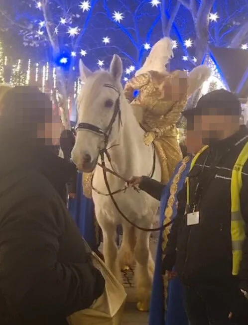 „PETA erreichten Aufnahmen vom Markt der Engel in Köln. Darauf ist zu sehen, wie eine als Engel verkleidete Person auf einem Pferd durch die dichte Menschenmenge geführt wird“, machten die Tierschützer öffentlich, „Die Hufe des Pferdes wurden golden angemalt. Zeugen berichten, dass dies mehrmals stattfindet und auch weitere Tiere zur Schau gestellt werden. Solche „Programmpunkte“ bedeuten für die Tiere Stress und eine erhebliche körperliche und seelische Belastung. PETA hat die Veranstaltenden angeschrieben und erläutert, warum Märkte und Feste aus Tierschutzsicht grundsätzlich ungeeignet für Pferde und andere Tiere sind. Die Organisation hat außerdem darum gebeten, künftig keine „Attraktionen“ mit Tieren mehr auf dem Markt der Engel anzubieten und so eine neue Tradition des Tierschutzes zu begründen.