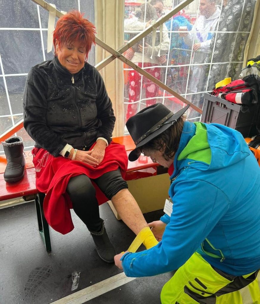 „Ich habe eine Bänderdehnung und Prellungen, Rippen und Hüfte sind betroffen… aber ich zieh durch“, sagte Marita nachher trocken zu koeln0221 – und war schon wieder auf dem Weg zum nächsten Auftritt auf den Heumarkt, um Frohsinn zu verbreiten.
