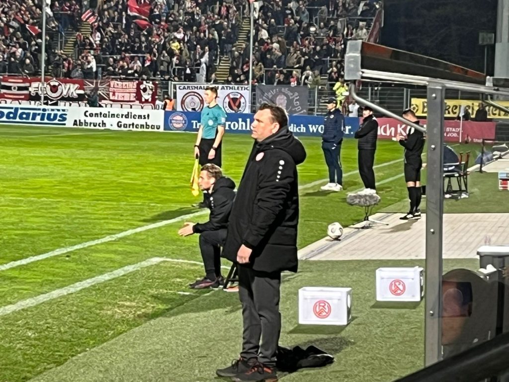 Uwe Koschinat war über viele Jahre DAS Gesicht von Viktorias Erzrivale in der Stadt, Fortuna Köln. Mit RWE knipste Koschinat dem Rivalen per Doppelschlag von „Dick“ Abriama (10.) und Lucas Brumme (12.) früh das Licht aus.