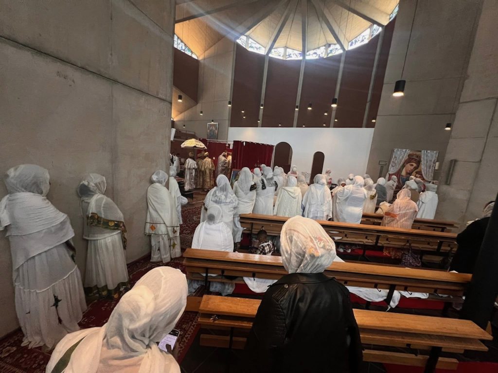 Die mehr als dreihundertköpfige Trauergemeinde um Mutter Lilli war in der Tracht in weißen Gewändern erschienen. Viele Kinder waren anwesend, es wurde aus Briefen von Mitschülern für Yosef vorgetragen.