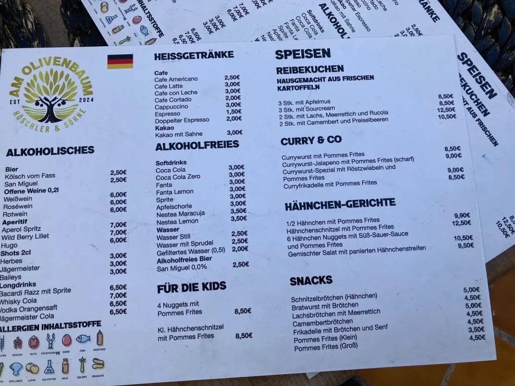 Denn: Auf der beliebtesten Insel der Deutschen brät „Malle-Andy“ in Paguera gemeinsam mit seiner Ehefrau Meiklen in seiner Imbiss-Bude „Am Olivenbaum“ direkt am Boulevard seit Juni 2024 Top-Würste und kölsche Deftigkeiten.