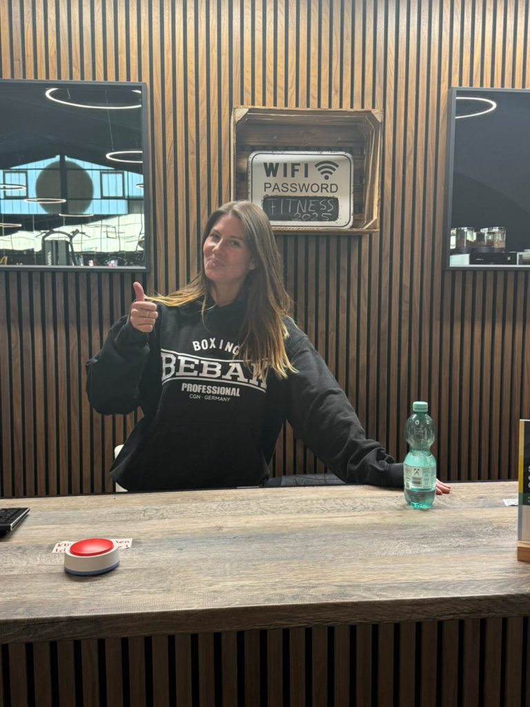 Die schöne Nina ergänzt: „Wir haben Anfang des Jahres und ihr wisst ja, da wird das mit den guten Vorsätzen ganz ganz groß geschrieben. Jedoch ist eins sicher: Von selbst wird es nicht besser, nicht wahr ? Man muss schon was dafür tun und ich freu mich über jeden einzelnen, der hier ins Gym kommt.“