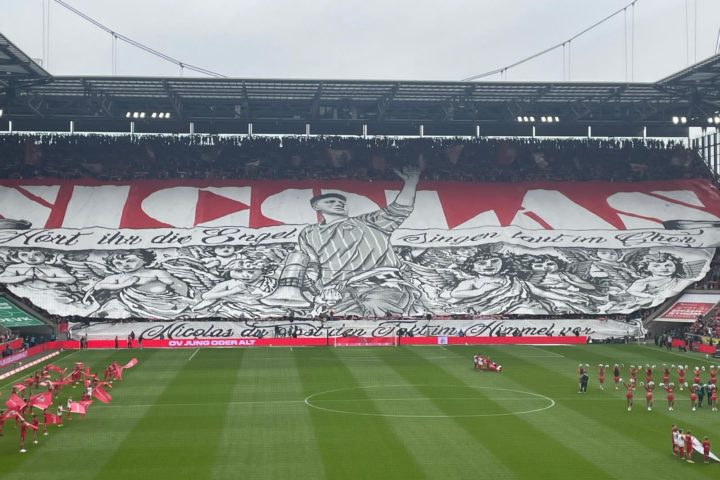 Köln | So viel Herz! So viel Liebe! Gäsenhaut-Stimmung schon vor Anpfiff des Abstiegskrachers des 1.FC Köln gegen Werder Bremen im Kölner RheinEnergieSTADION. Denn wenige Minuten vor dem Spiel hüllten die Anhänger des FC die ehrwürdige Hans Schäfer-Südkurve in eine opulente komplette Choreografie in weiß. Sie ist dem jüngst, unmittelbar vor dem Heimderby gegen Gladbach verstorbenen Vorsänger der Wilden Horde 96, Nicolas gewidmet. Nicolas ist in seiner Gesang-Pose dargestellt: „Hört Ihr die Engel singen laut im Chor“, sind ihm die Heiligen in Bild und Text anheim gestellt. Einhellig Anerkennung und Beifall für diese große Geste im weiten Rund der Arena. … Südkurve des 1.FC Köln: Krasseste Fan-Choreo ever – und Heimsieg! weiterlesen