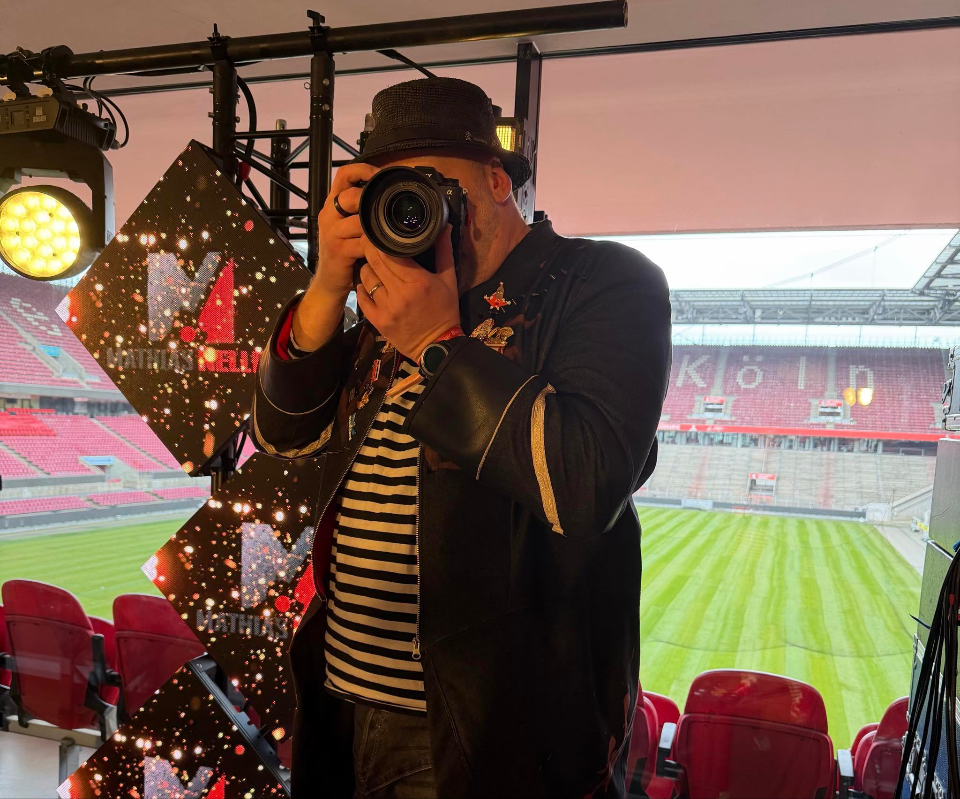 In der echten Welt d.h. in der 140 Konzerte ungefähr mit auch größeren Bands begleite, da gibt’s halt Pässe. Blitzlichtverbot. Backstage-Bereiche, wo du wirklich nur mit bestimmten Pässen reinkommst. Und im Karneval mittlerweile muss man einfach sagen, gibt’s das nicht mehr und die Leute, die sind teilweise so betrunken, dass denen das auch scheißegal ist.“