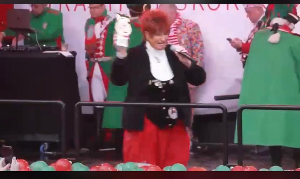 Es war DIE Szene von Wieverfastelovend: Marita Köllner nahm am Alter Markt gerade stolz eine Trophäe für ihr unglaubliches Wirken und ihre Leistungen im Kölner Karneval entgegen, da wurde ihr der nasse, glitschige Bühnenboden zum Verhängnis.